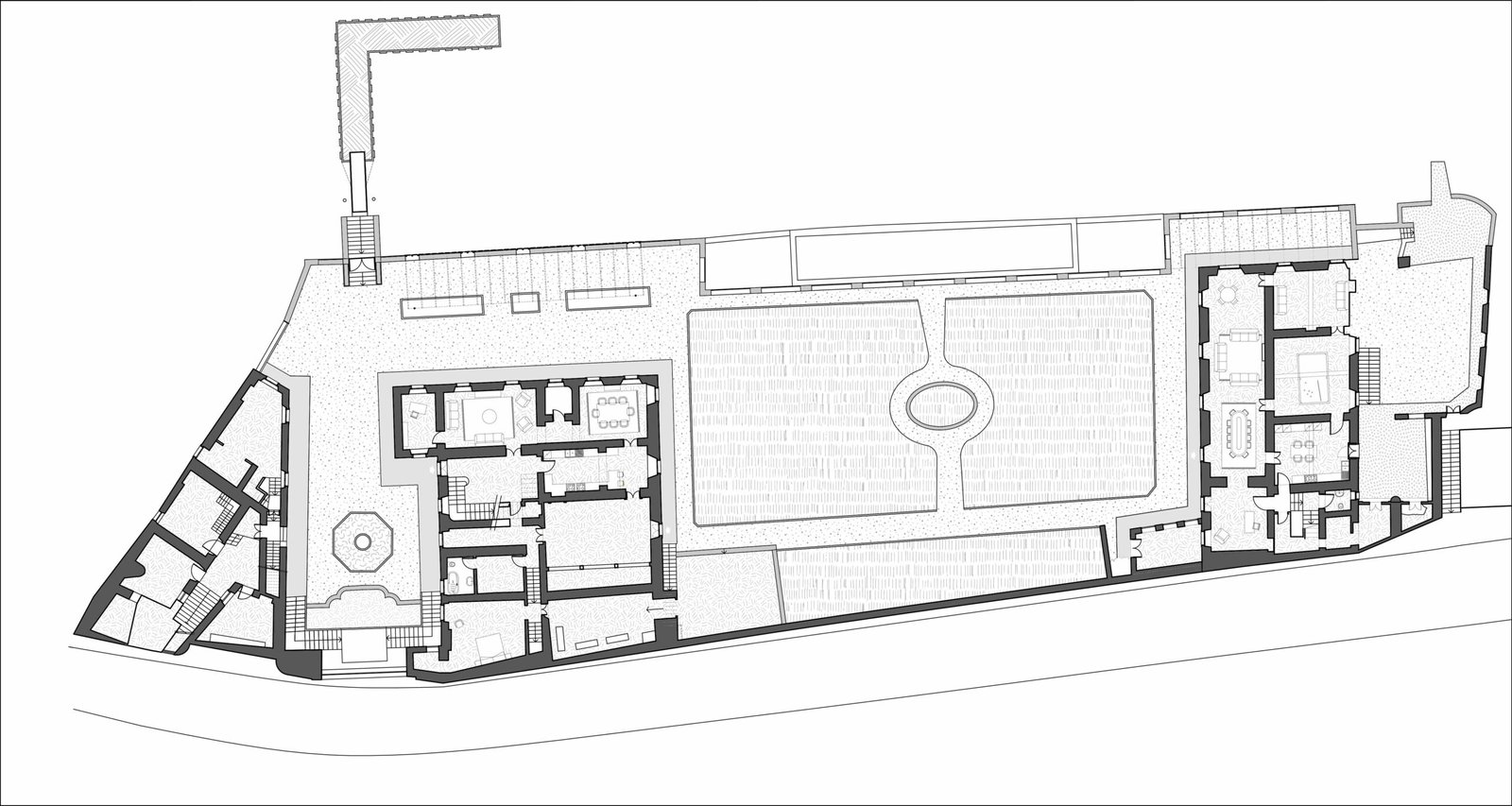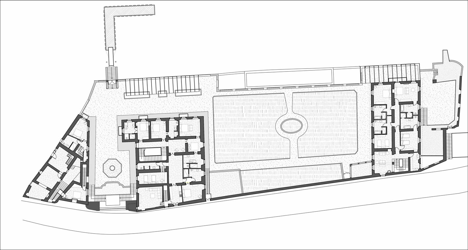 Un intenso e minuzioso lavoro è stato effettuato anche rispetto agli spazi dei locali interni oltre che alle risoluzioni applicate sugli esterni. Si intervenne innanzitutto sul miglioramento delle condizioni igieniche sanitarie e sulla valorizzazione funzionale della distribuzione interna. Inoltre, si operò per la resa salubre delle solette e spazi controterra, realizzando un sistema di vespai aerati, oltre che all’installazione di un completo impianto di riscaldamento a sostituzione delle stufe a legna presenti.