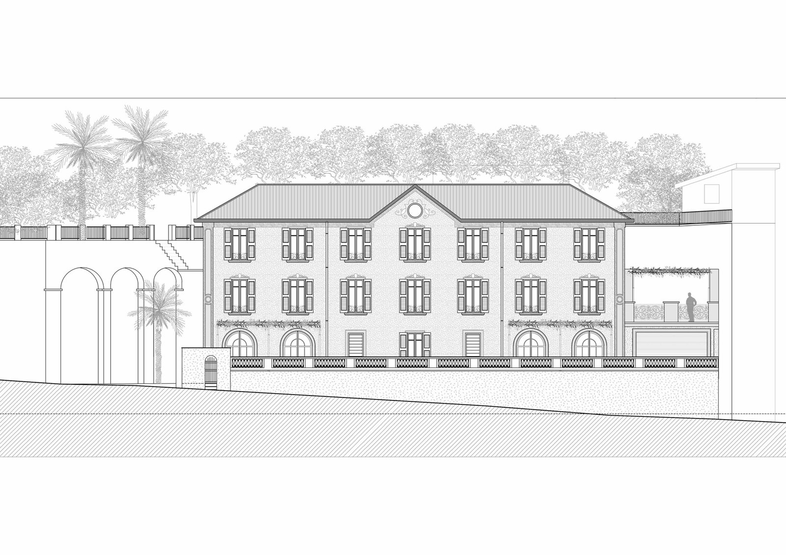 L’edificio esistente ha origini a metà del secolo precedente e composto da cinque unità residenziali disposte su quattro livelli fuori terra. Sulla balza adiacente all’ultimo piano sono collocati locali accessori.